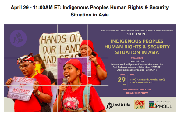 Co-organized by Land is Life, the International Indigenous Peoples Movement for Self Determination and Liberation (IPMSDL) and the Asia Indigenous Peoples Pact (AIPP).