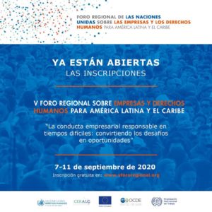 Basándose en la exitosa experiencia de años anteriores, el V Foro Regional sobre Empresas y Derechos Humanos para América Latina y el Caribe se celebrará virtualmente en septiembre de 2020.